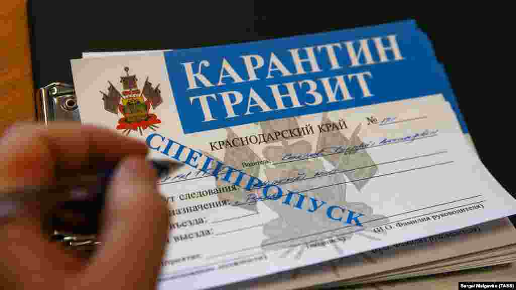 Такой спецпропуск можно получить при пересечении блокпоста на мосту через Керченский пролив. Блокпост заработал в ночь на 2 апреля по решению подконтрольных Кремлю властей полуострова. Автомобили пропускают только после проверки документов и оценки состояния здоровья.