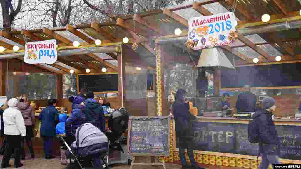 Праздничные гуляния на Масленицу в Симферополе запланированы на три дня: с 16 по 18 февраля. В первый день на проспекте Кирова развернули ярмарку продовольственных товаров, товаров народного потребления и декоративно-прикладного искусства под лозунгом: «Масленица идет, блин да мед несет!» На следующий день празднование переместилось на привычное горожанам место – в сквер имени Тренева. Там народные гуляния открыли священнослужители Симферопольской и Крымской епархии, они благословили благотворительную ярмарку, собранные здесь средства пойдут на лечение двух детей. Веселье концертом поддержали вокальный ансамбль «Петропавловская песня» и коллектив Крымского окружного казачьего общества. Гости праздника могли купить сувениры, различные поделки и казачьи атрибуты – черкески, кубанки, плетки. Для юных симферопольцев были подготовлены военизированные развлечения.
