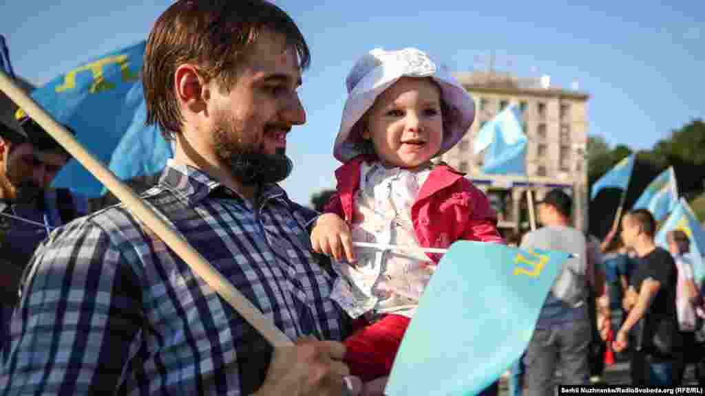 В Киеве на Майдане Независимости 26 июня прошел митинг, приуроченный ко Дню крымскотатарского флага. В начале мероприятия прозвучали гимны Украины и крымскотатарского народа, а член Меджлиса Эскендер Бариев рассказал об истории национального символа крымских татар. Также со вступительным словом выступил председатель Меджлиса крымскотатарского народа Рефат Чубаров.
